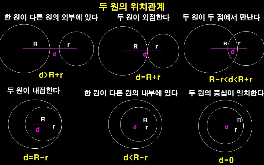 원과 부채꼴, 원의 위치관계